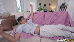 Lolly Dames é flagrada pelo genro em seu sofá, indo e voltando, e acaba ejaculando em sua boca.