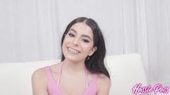 Angel Gostosa está aqui para conhecer Brickzilla, mas primeiro fala sobre suas primeiras experiências no porno. Ela tira a roupa lentamente e começa.