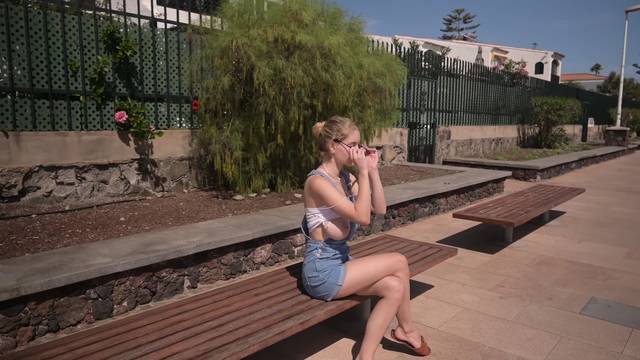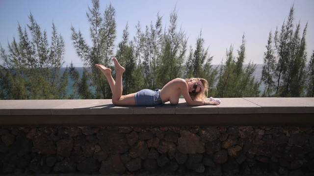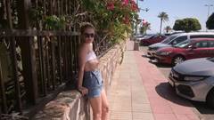 Mila adora mostrar seus seios porque se orgulha do tamanho deles. Hoje ela vai passear nas dunas e os tira para que todos possam ver seus peitos enormes