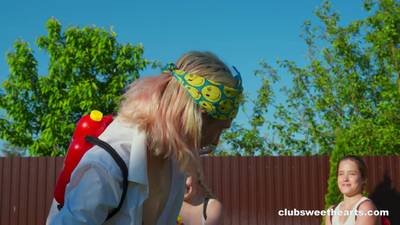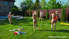 Esse homem sortudo está brincando de pistola d'água com cinco garotas! Mas a situação escalou rapidamente porque agora ele está comendo toda as cachorras