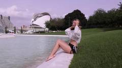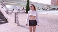 Cassandra anda com os peitos de fora ao ar livre e fica muito excitada
