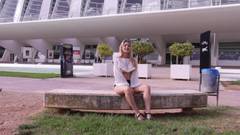 Essa jovem e simpática mulher é uma loira que muitos de nós gostaríamos de ter na cama, mas ela prefere andar por lugares turísticos com os peitos à mostra.