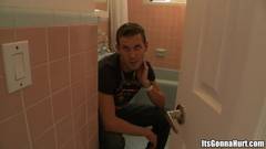 O pequeno Logan está se escondendo no banheiro porque está com medo do monstro pau negro que está esperando por ele lá fora! Veja como ele enfrentará seus medos