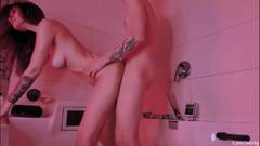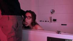 Na banheira, ela começa a chupar e acaba sendo fodida como uma vadía.