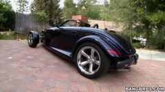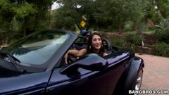 Eva Lovia mostra o seu carro desportivo e deixa-nos ver o seu cu grande e bonito. Está quente e prestes a foder com um homem muito afortunado.