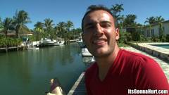 Esse gay de cabelos escuros tenta se distrair do lado de fora porque está prestes a ser fodido pelo maior pau negro que já viu. Ele está pronto para chupar.