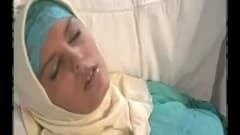 Uma mulher árabe se masturba antes de pôr um galo na boca e uma buceta. Ela está entusiasmada com seu pinto