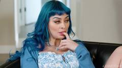Jewelz Blu senta-se ao lado de Pierce e o provoca tocando em si mesma