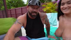 Tony convida GI Joey para uma festa à beira da piscina para que foda a sua mulher. Começa imediatamente a tocar suas grandes tetas e sua buceta.