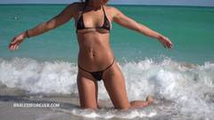 Seu micro biquíni terá vida curta quando ela o tirar na praia