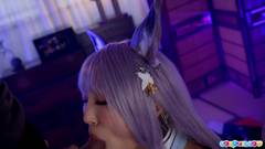 Essa cosplayer se chama Emiri Momota e sabe que, com dois homens, ela pode desfrutar dos melhores boquetes com os dois pênis em sua boca.