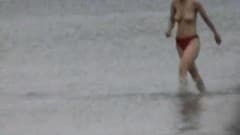 Esse voyeurista não tem mais nada para fazer a não ser ir até à praia com sua câmera em um saco e filmar os corpos nus das belas mulheres despercebidas...