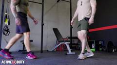 O soldado Jeremiah Cruze adora o pênis grosso de Damien King depois de um treino duro, fazendo uma garganta profunda antes de ter seu cuzinho apertado fodido.