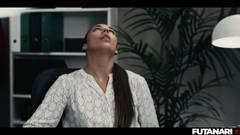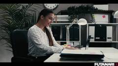 Milan Cheek e Alexa são fodidas com um pau falso no escritório