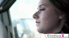 No quintal de uma casa, essa morena se ajoelha para chupar o pau dele. Ela então fica de quatro para que ele possa penetrá-la por trás