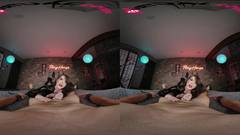Autumn Rain, trans safada, veste látex e se entrega com tesão! Mama o pau com desejo, leva rola no cu com força e goza forte, exibindo o corpo brilhante.
