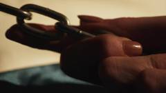 A sensual ruiva milf é mostrada nua e sozinha na cama, brincando com correntes em uma cena quente de BDSM que nós vamos adorar.