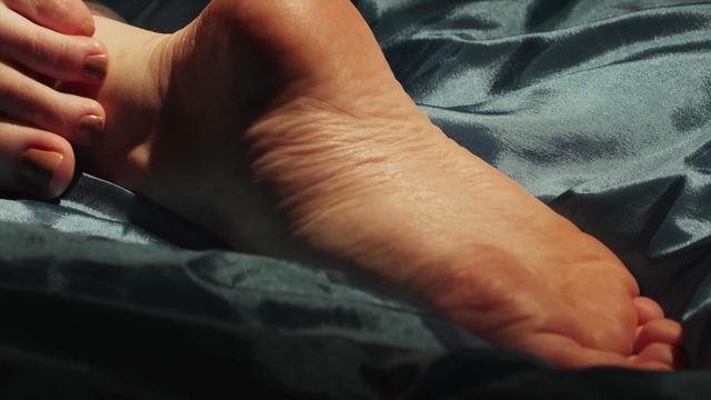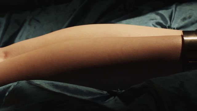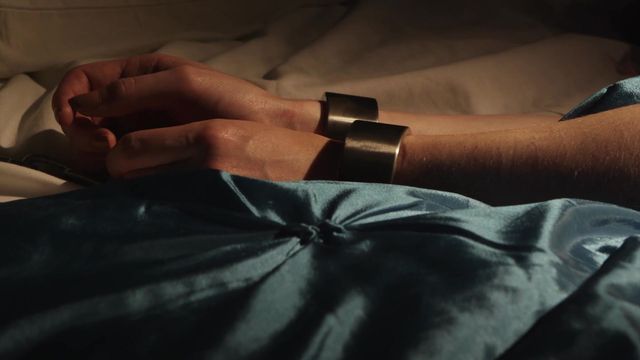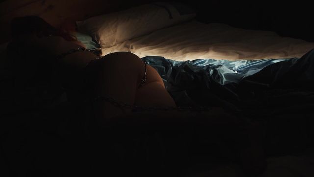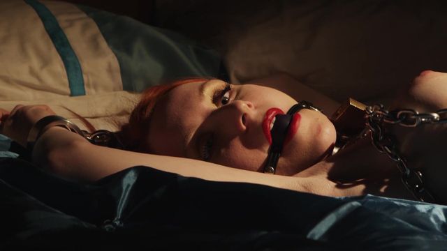 Milf ruiva sensual sozinha na cama em um pornô BDSM acorrentado