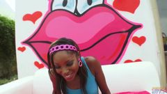 A garota negra recebe uma felação , faz um boquete e engole o esperma