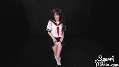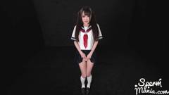 Ria Kurumi é uma linda morena asiática em um traje de marinheiro e meias, que se masturba sozinha em POV. Sua buceta peluda brilha enquanto ela se toca com luxúria.