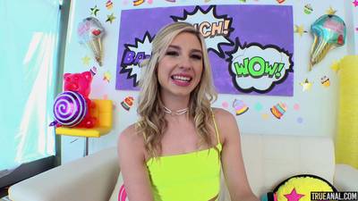 Kait é a líder de torcida loira que será fodida analmente com óleo