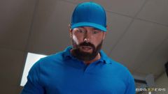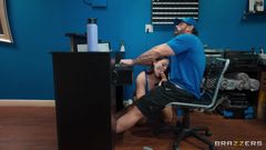 Joey, funcionário de uma academia, recebe favores sexuais de membros excitados, tem seu pau grosso chupado e uma buceta preta devorada.