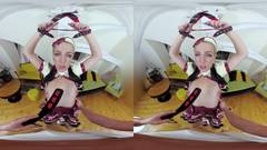 Loira gosta de fazer boquete em pornô VR com as mãos amarradas