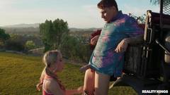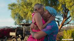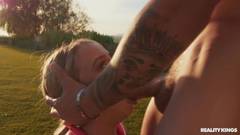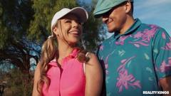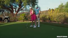 Summer Vixen pula sua aula de golfe e salta nos braços de Victor Ray depois de acertar uma tacada. Ela chupa o pau grande dele e se inclina sobre o carrinho.
