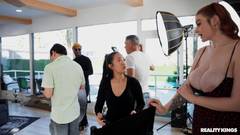 Abigaiil Morris e Babe Gemini ficam nuas, chupam as tetas e lambem a buceta. Mick Blue entra sorrateiramente para uma foda, o que leva a uma foda cheia de tesão nos bastidores.