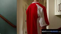 Esse rapaz de cabelos escuros veio buscar seu amigo gêmeo depois do treino de futebol. O jovem só tinha uma maneira de lhe dar o troco. Ter seu cu fodido.