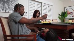 Melztube rouba Damion Dayski de seu colega de trabalho, chupa seu grande pau preto debaixo da mesa na cozinha e o fode com os peitos
