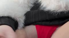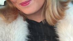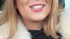 No carro, Lea liga a câmera para nos mostrar como ela chupa um pau falso e depois nos mostra sua buceta carnuda e rosada.