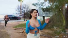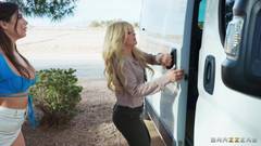 Policiais Kayla Kayden e Tru Kait fazendo sexo lésbico quente dentro de uma van