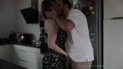 Sua namorada o espera na cozinha e quer que ele coloque o pênis no seu traseiro