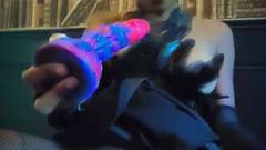 MILF negra tem suas meias rasgadas e seu cuzinho fodido com um brinquedo