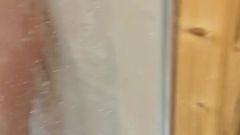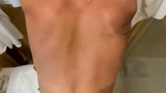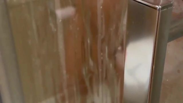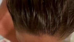 Para que todo o mundo se excite, ela decidiu se deixar gravar enquanto toma banho, e quando já tem o corpo molhado, começa a mamar o pau do amigo.