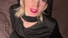 A noviça rebelde quer nos mostrar seu plug em forma de coração bem enterrado em seu cu, depois pega seus dois grandes dildos para penetrar seus buracos.