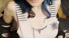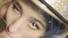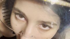 Khalamite veste roupa muito colada e um capacete na cabeça porque sabe que após esta mamada de pau virá uma chuva de sêmen sobre a sua cabeça.