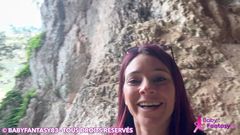 Ela é uma francesa que adora passear pela montanha para ver paisagens, mas ficou excitada e agora quer chupar o pênis do namorado na entrada de uma caverna.