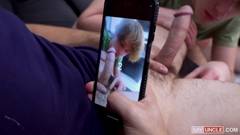 Esse jovem tem as bolas cheias e um tesão enorme! Quando seu primo vê sua protuberância, ele tenta excitá-lo, masturbando-o com as mãos e muito mais.