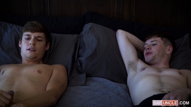 Este homem acorda com seu meio-irmão ao seu lado, nu e masturbando seu pênis. Ele se junta a ele, fica nu também e eles começam a se masturbar.