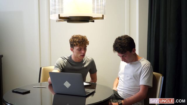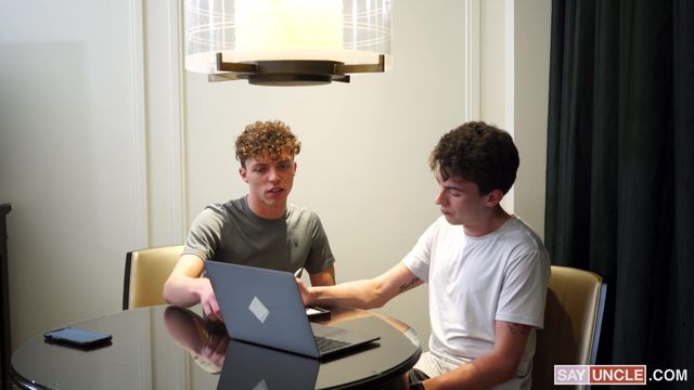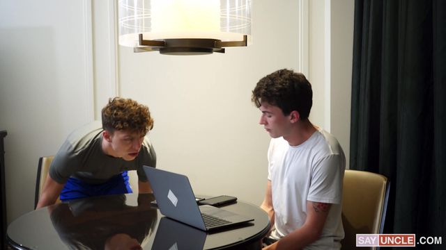 Seu primo o pega se masturbando em frente ao computador e se junta a ele.