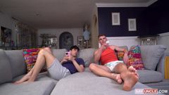 Esses dois primos estão prestes a assistir a um filme, mas um deles fica entediado e puxa o pênis do meio-irmão para que ele o chupe.