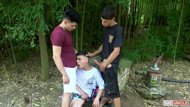 Esses três jovens latinos se reúnem no meio da floresta para chupar os paus uns dos outros e brincar com um brinquedo sexual vermelho brilhante que lhes dará prazer.