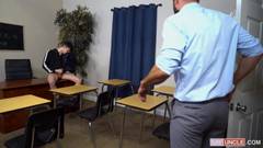 Este aluno se masturba cheirando o casaco de seu professor enquanto o espera! Quando ele chega, eles começam a se beijar e isso rapidamente leva ao sexo anal!