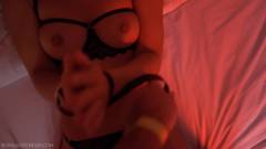 Dois homens a veem se masturbando e isso é suficiente para excitá-la, mas ela quer fazer sexo oral em um deles. A luz vermelha faz com que ele pareça excitado.