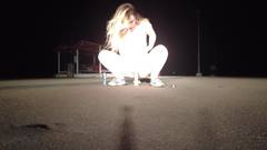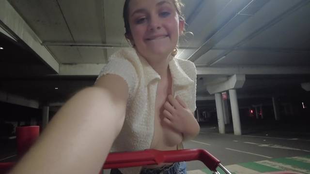 Para lhe dar mais prazer, ela decide se despir e se masturbar em um estacionamento público, com medo de que alguém possa vê-la.