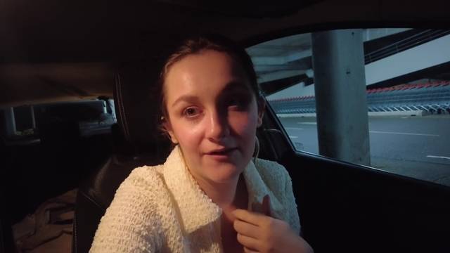 Ela fica com vergonha quando se masturba em um estacionamento público.