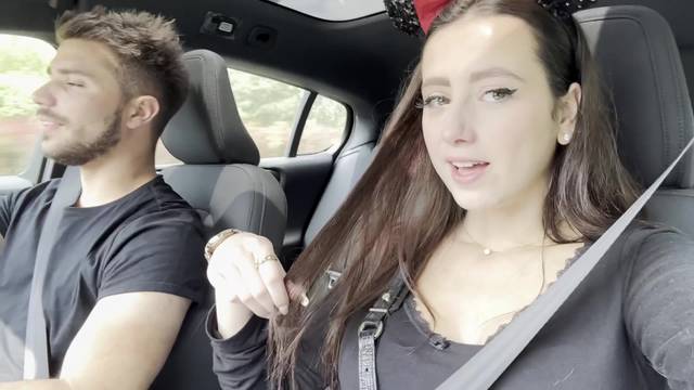 A jovem é tão viciada em sexo que mal chegam de passear, ela pede ao seu rapaz que tire o pênis para ela fazer uma punheta e mamar durante um bom tempo.