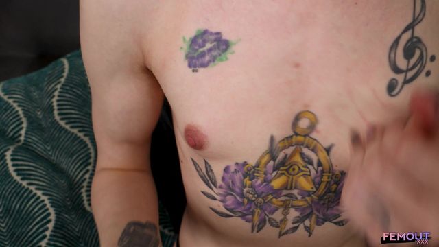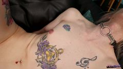 O momento sensual de masturbação de uma loira trans emo tatuada
